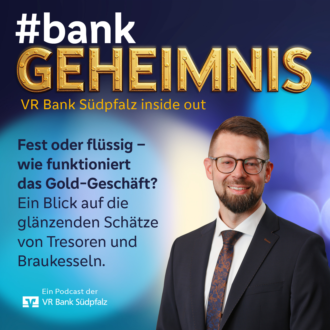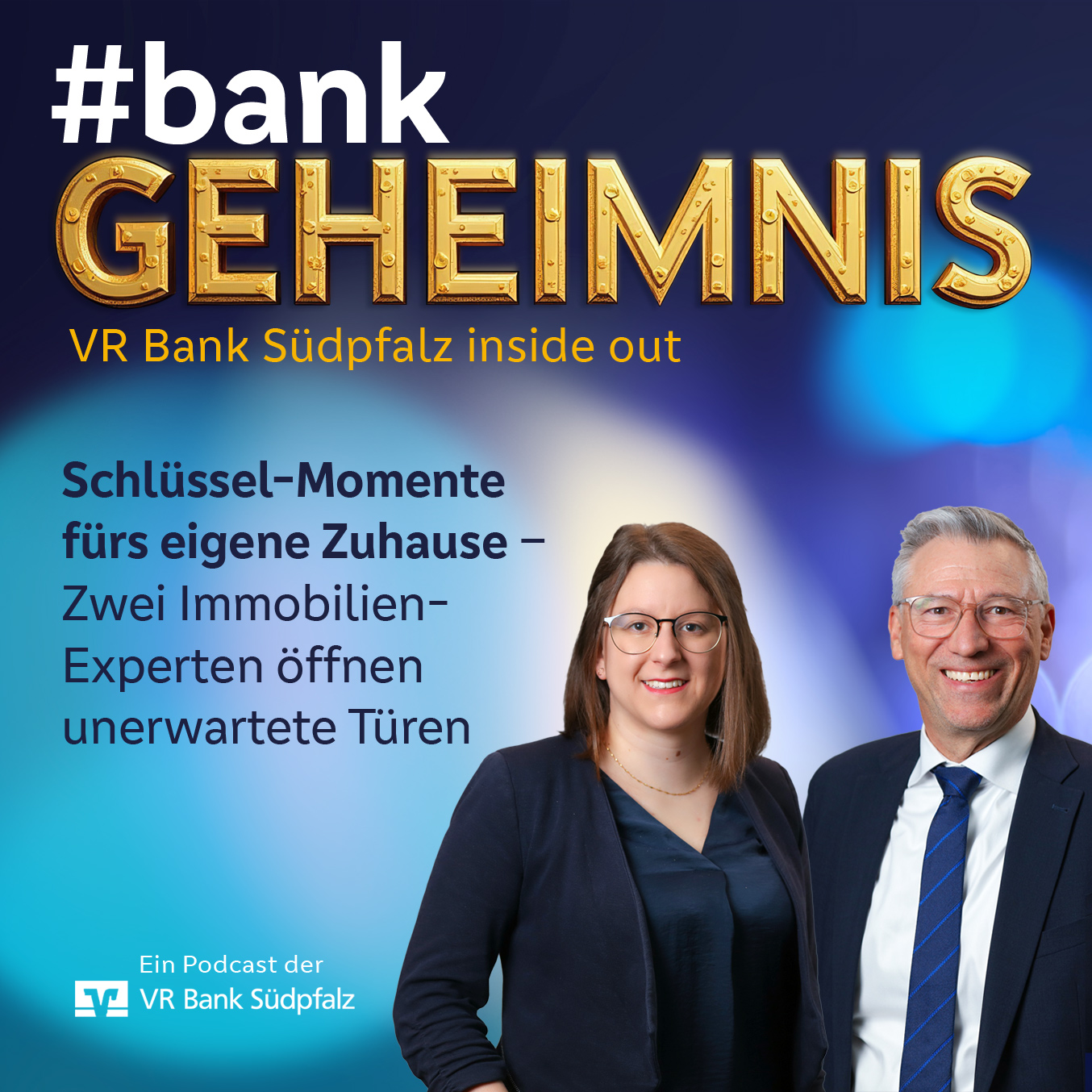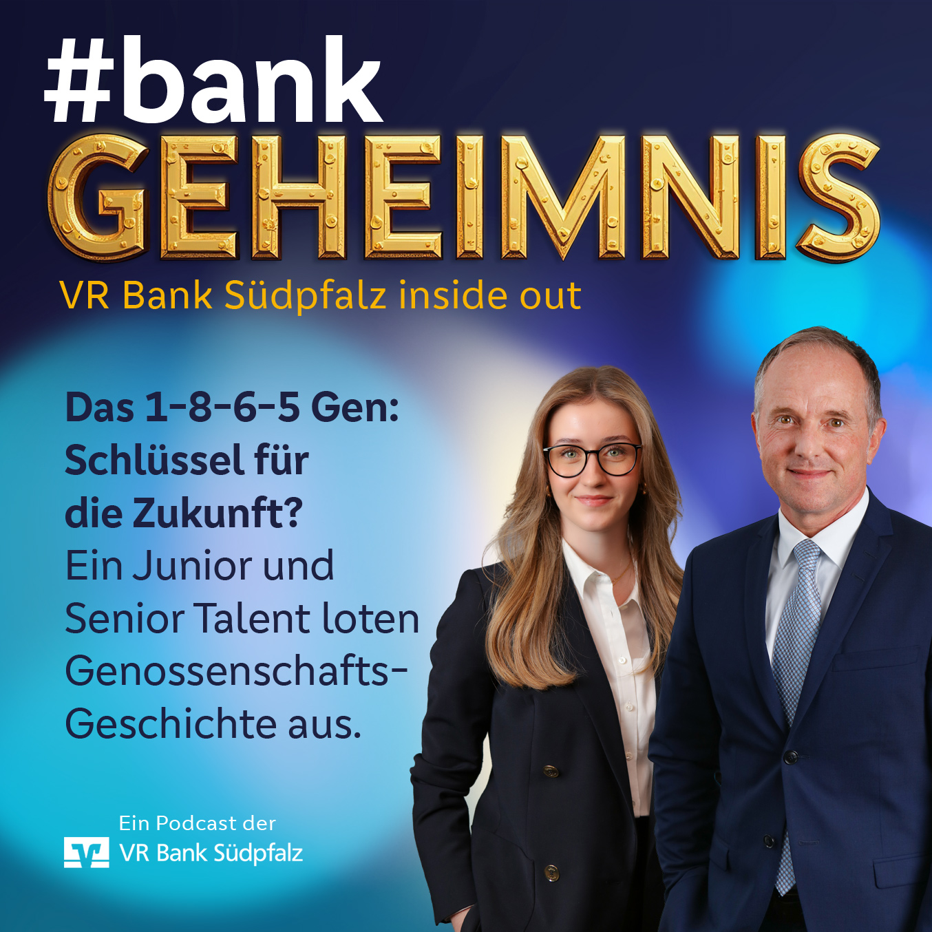 Im Jubiläumsjahr haben wir ein neues Format gestartet, das die Menschen in den Mittelpunkt rückt, die unsere Bank ausmachen: unseren Podcast #bankGEHEIMNIS – VR Bank Südpfalz inside out. In jeder Folge spricht Moderatorin Dr. Claudia Borowy mit ganz unterschiedlichen Geheimnisträgern: Vom Vorstandsvorsitzenden über Nachwuchstalente bis hin zu Experten hinter den Kulissen. #bankGEHEIMNIS zeigt, was unsere Mitarbeitenden bewegt. Ein Podcast für alle, die neugierig sind auf die Geschichten hinter den Zahlen und auf das, was unsere genossenschaftliche Gemeinschaft so besonders macht.