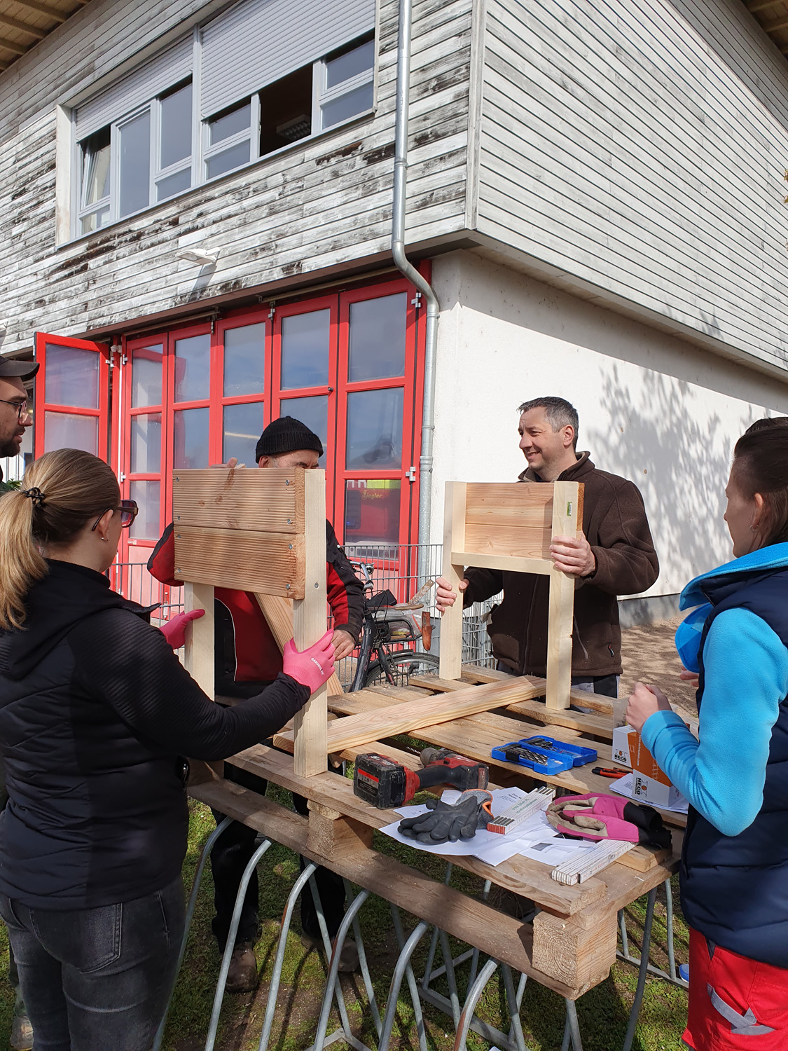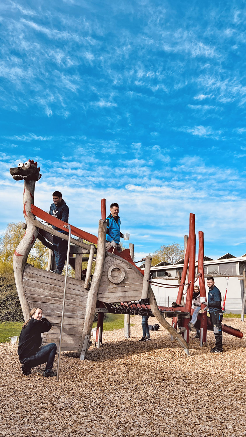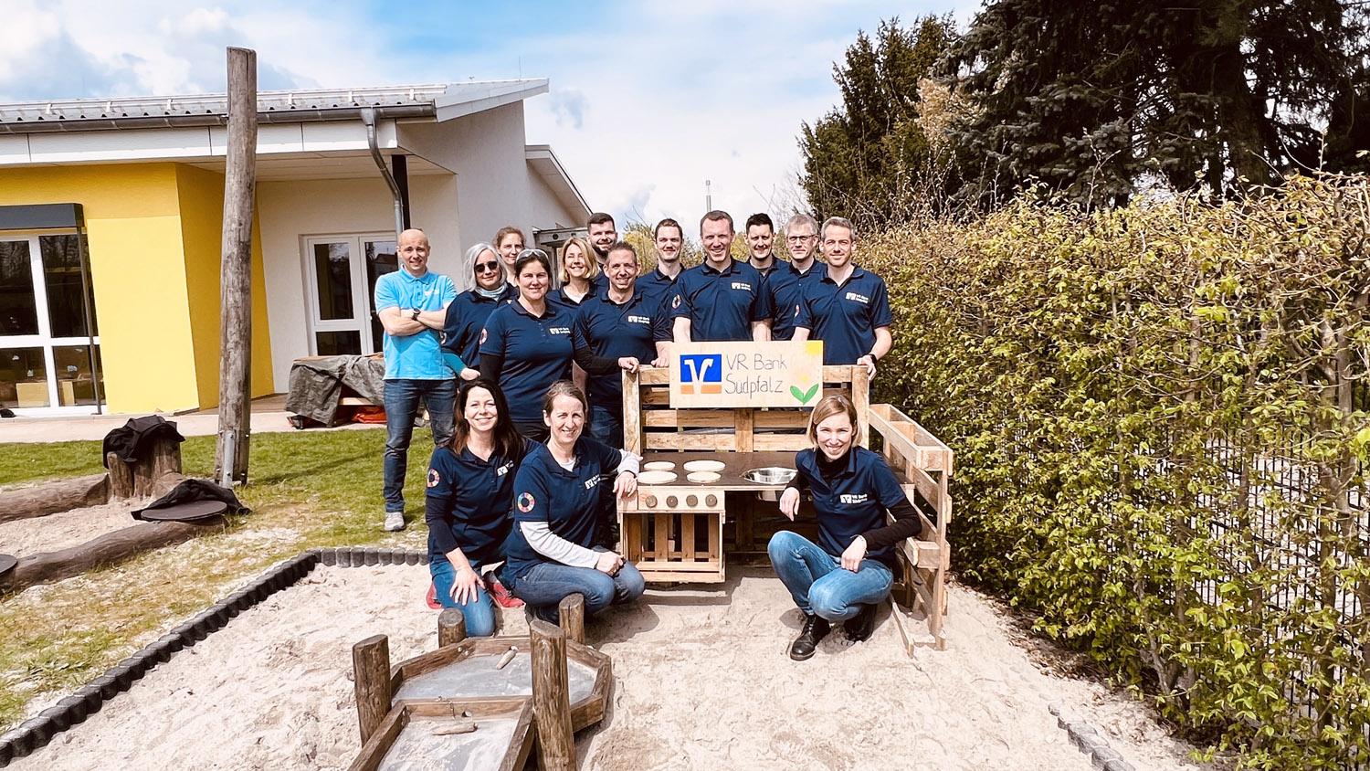 Ich selbst unterstützte mit rund 20 Kollegen die Kindertagesstätte Queichhüpfer in Offenbach bei ihren Frühjahrsvorbereitungen. Nun sind der Schuppen und die Spielgeräte gestrichen, das Unkraut gejätet, die Pflanzbeete bereit für Gemüse. Eine selbstgebaute Matchküche aus Paletten wartet nur noch darauf, dass Kinder damit spielen. Jetzt kann der Frühling kommen.